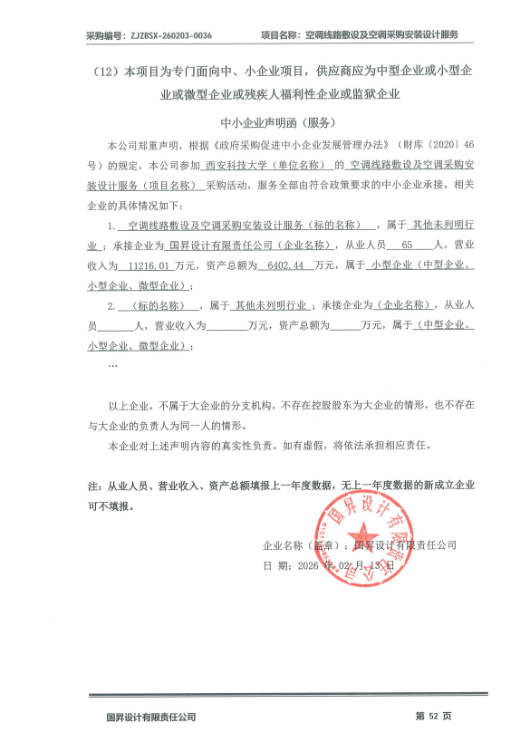 | 1 | 其他服务 | 空调线路敷设及安装设计服务 | 满足采购文件要求。 | 满足采购文件要求。 | 满足采购文件要求。 | 满足采购文件要求。 | 330,000.00 |